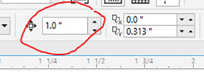 - Click off* of the train to deselect the object. Then, set the Nudge factor (to be used shortly) to 1 in. (See FIGURE 1). Note: the Nudge factor will be available on the Property Bar only when the Pick tool is chosen and no objects are selected.