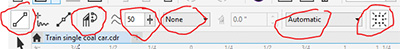 - Once you’ve downloaded and opened the file above in CorelDRAW, click anywhere on the train and note the Information area at the bottom of the screen showing that the image is a curve: it is a single object with a red outline and gray fill.