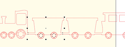 - To add another coal car, select the right-most two objects (ie, the new coal car and the original grouped object), nudge them to the right by 1 in., and copy from the clipboard again, just as you did in step 16. You can continue doing this until you have the number of coal cars your application requires.