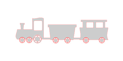 - Ungroup both the train engine and “non-engine” (ie, the coal car/caboose) objects and delete from each pair the object that represents the gray fill.