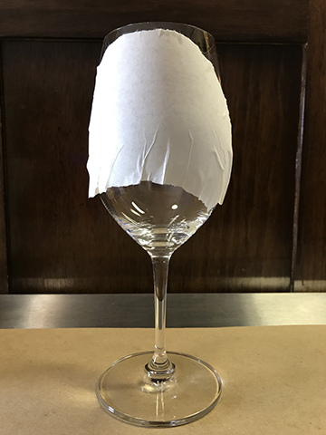 One of the benefits of acid glass etching is not having to cover and protect the entire product. A small piece of laser tape can be cut or torn to a slightly larger size than the artwork and then applied (FIGURE C).