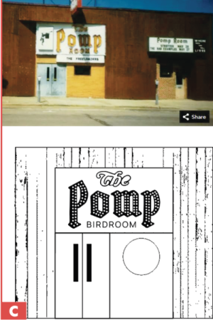 I started with a search for venue photos online. (I knew I had a photo of me in front of the Pomp Room from the mid-1990s but finding this artifact would be another story.) Luckily,