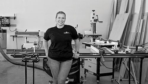 Cleveland loved making things from an early age, learning about baking, painting, and crafting from her grandmother. In 2013, as a stay-at-home mom, she began teaching herself to build furniture out of necessity.