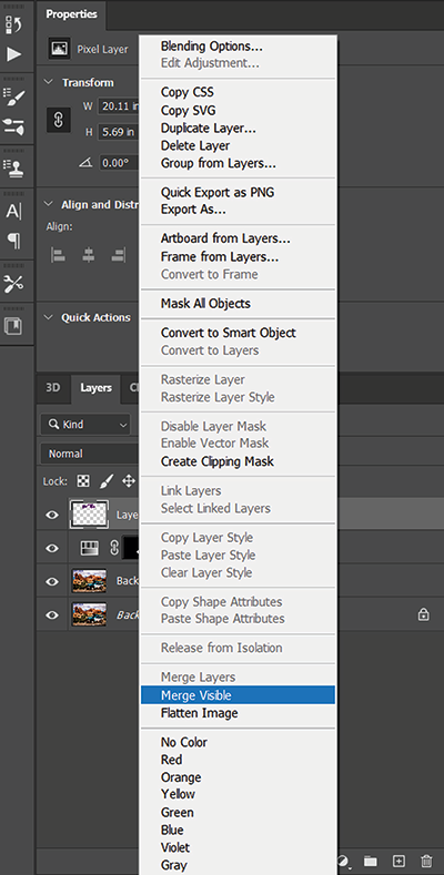 When finished  modifying, save the Photoshop file. Then right-click on any active layer,  select Merge Visible (figure F), and go to File > Save As to create a  new file with all the changes.