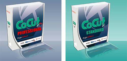The original boxshots had gradient backgrounds with various shades of blue on the “Pro” product and various shades of green on the “Standard” product. Using the original icons as reference, I created two rectangles behind the new box graphic in CorelDRAW. Then I used the Eyedropper tool in CorelDRAW to capture the starting and ending color for the two gradients (fountain fills) in the background.