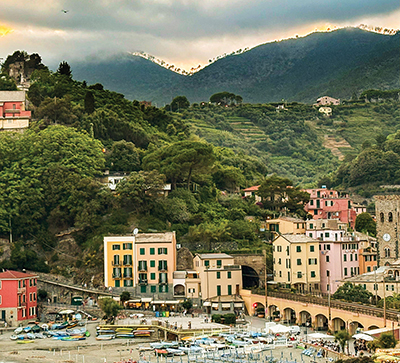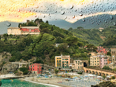 The landscape  of Cinque Terre, Italy, shown in figures A and B illustrates the  haze effect before and after applying Photoshop fixes.