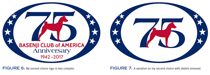 There is just too much detail in all choices for any of them to reproduce well at a small size. The example at top left of Figure 4 would work the best if the years were removed—just leave the 75 and the dog silhouette. But it didn’t grab me as much as some of the others. So my primary choice is the logo shown in FIGURE 5, though admittedly it is the one with the most details.